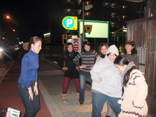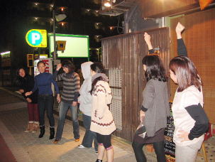 ★指令を受けて急きょ結成された余興メンバー達。寒空をものともせず早速、余興の練習をしています(#^.^#)