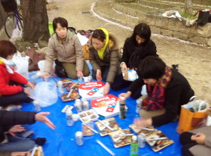 レッスン後、スタジオ近くに皆でお花見に行きました!お弁当や飲み物を買い込んでレッツGO!\(^o^)/