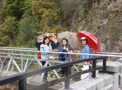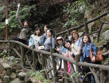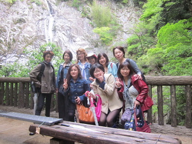 | 滝に着きました! 緑と水の香りサイコー! 先生の引率の元、まだまだ上り続けます |