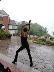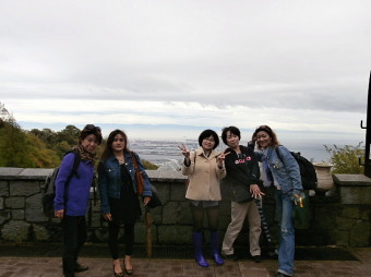| ●到着!布引ハーブ園 ※ テーマ 『山頂にて』 お昼ごはん前にウォーミングアップ(?)する先生 |