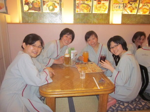 | お昼休憩・・・『いただきま〜す!』 \(^o^)/持参のおやつと軽食で乾杯 |