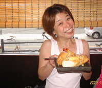 お米を食べない先生の為にマスターがパンとエビフライをプレゼントして下さいました!(ケーキの代わり?)