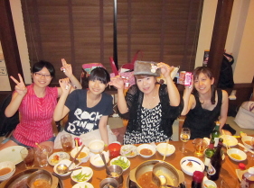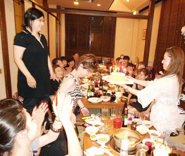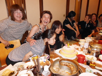 ![]() ●レッスン後、皆で先生の○○回目のお誕生日パーティーを開きました!レッスンに参加できなかったメンバーも集まって皆で乾杯! |