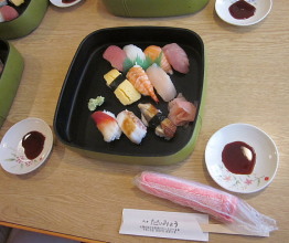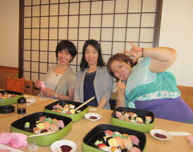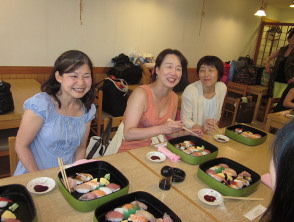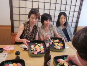 | ●レッスン後皆でランチ!お寿司です!豪華です!まだ大阪です! 腹ごしらえして 『いざ!京都!』 |