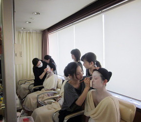 | ●皆そろって よく化けました!圧巻の集合写真! ●初の白塗りよ、さようなら!!私達、普通の女の子(?)に戻ります! |