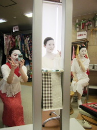 ●まずは着物選び、そしてメイクです 待ってる間に自由に撮影させて貰えるのが嬉しい!人生初の白塗り!記念撮影に夢中です(^_^;) |