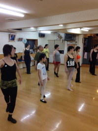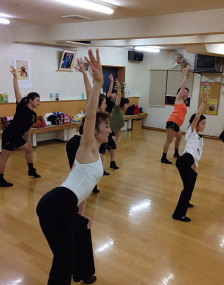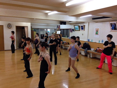 | ●『列車に乗り遅れないで〜!!』の先生の声に踊りながら思わず爆笑! 本日も明るく、熱いレッスン石崎ジャズダンススタジオでした(#^.^#) |