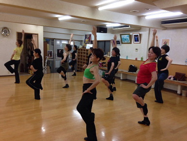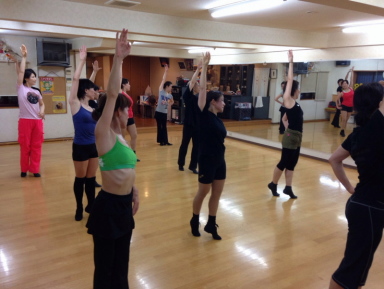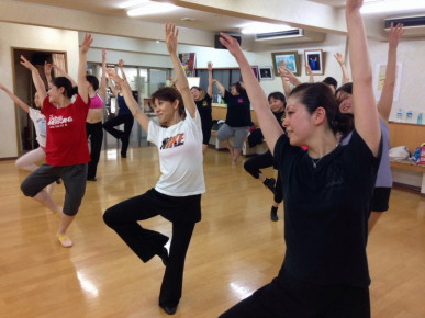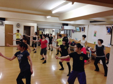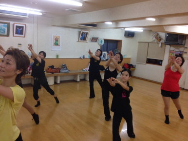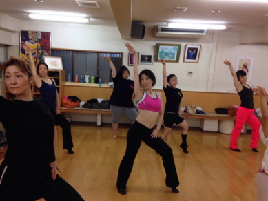 | ●背筋やヒップを使って女性らしいラインを強調〜!!先生のカッコイイ&セクシーを真似ようとみんな懸命に踊ります セクシーってツライ・・・きっと明日もスーパー筋肉痛が待っています(^_^;) |