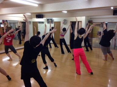 | ●心なしかキープが多かった今日の振付(^_^;) 自分の足の重さをお尻と足の筋肉痛で思い知りつつも、熱く踊って気分は爽快!でした(^◇^) |