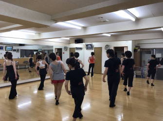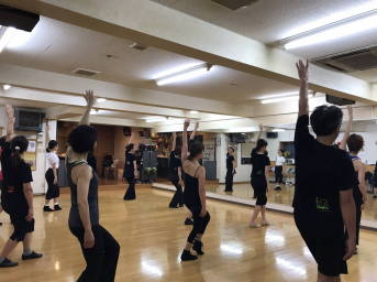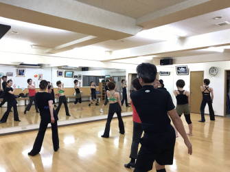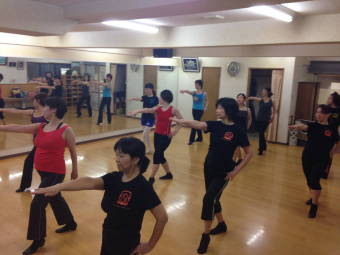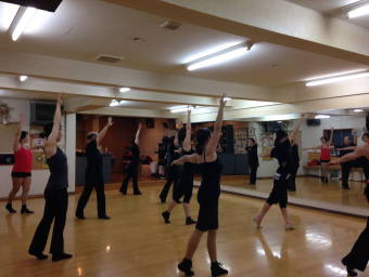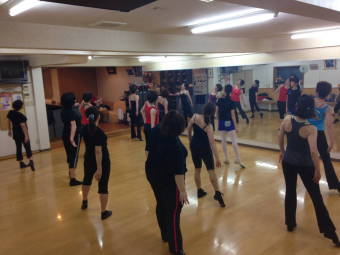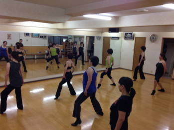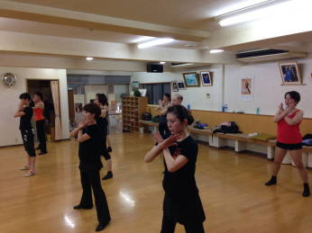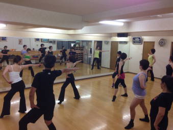 | ●上半身を大きく、シャープに!!軸が振られます・・( ;∀;) 迷える子羊達(?)に先生が膝の使い方でスムーズに踊れる事を丁寧に教えて下さいました | ||