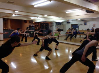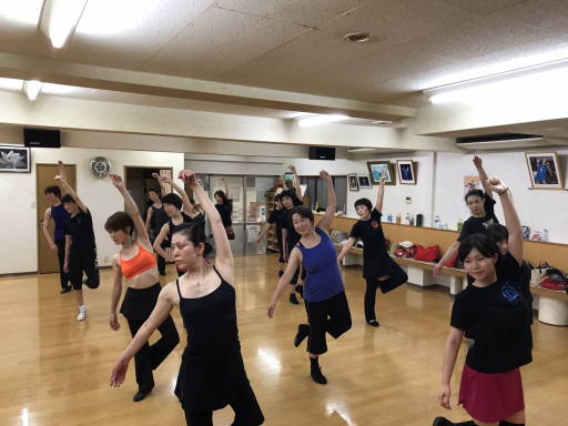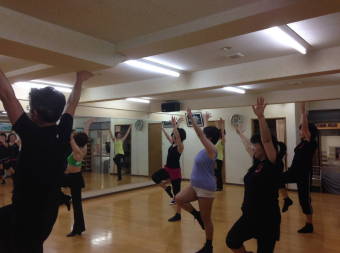 | ●盛り上がる後半に、振付もヒート・アップ!\(◎o◎)/!重力に抗いながら、懸命に宙に浮いた(?)メンバー達・・今日も充実の熱いレッスンでした! | ||