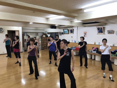 | ●左右繰り返しに時々迷子になりつつも・・エネルギッシュなシンセサイザーと振付に気分も高揚!(≧▽≦)今日も充実の楽しいレッスンでした(*^-^*) | ||