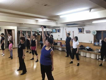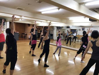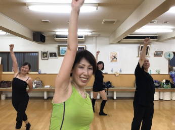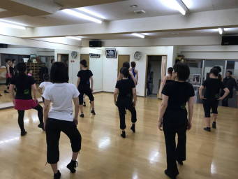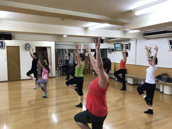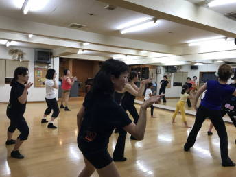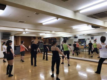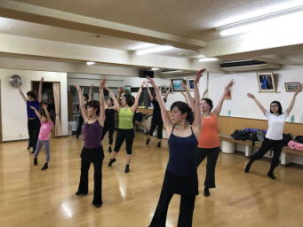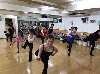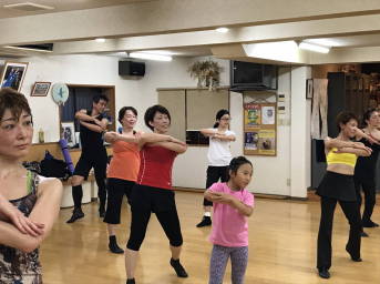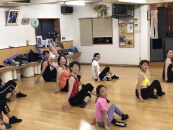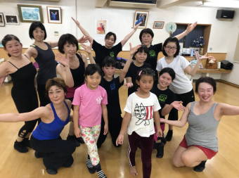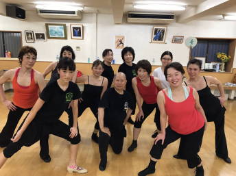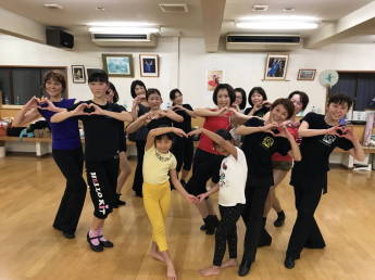| ●繰り返しもあり、いつもより少しロングバージョンでしたが『明るく、楽しく(?)』踊り切って、最後に皆で記念撮影~!今日も充実のレッスンでした(*^-^*) | |||