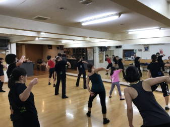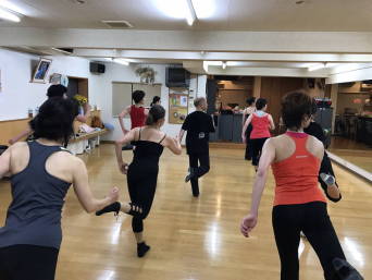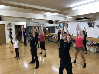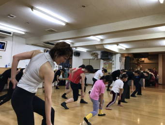 | ●リズミカルにホップ、滑らかにボディムーブとの緩急のある今日の振り( ;∀;)、ヘトヘトになりながら全員力一杯踊って 今日も熱いレッスンでした(^◇^) | |||