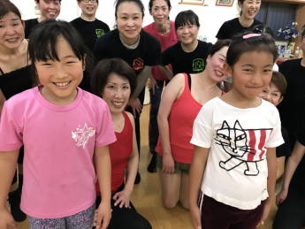 | ●すでに胴体全部が筋肉痛~!(^^;)それでも全員パワフルに踊り切って、最後に皆で記念撮影~!!今日も楽しく、爽快なレッスンでした(#^^#) |