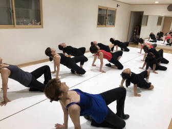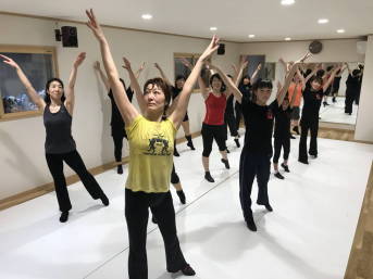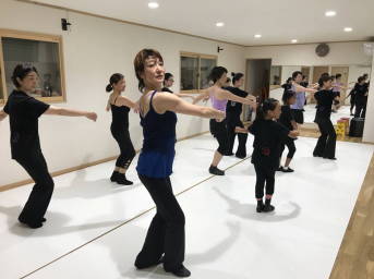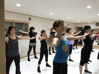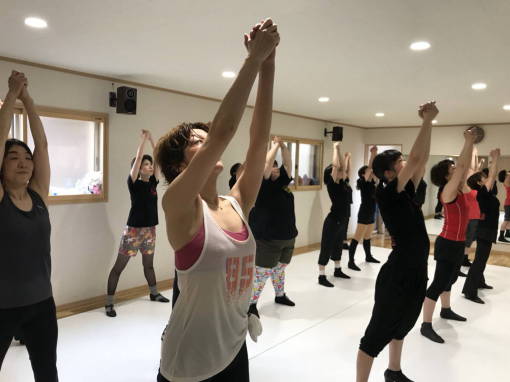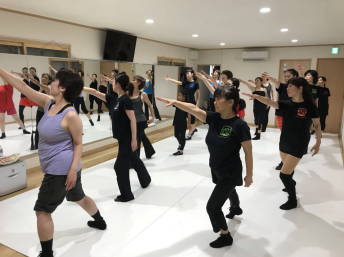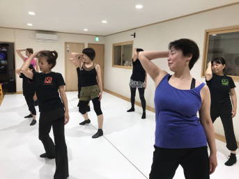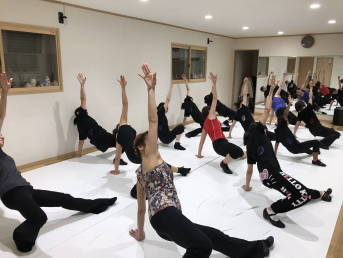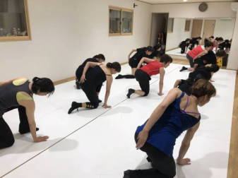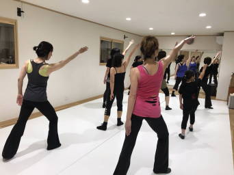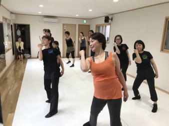| ●大きく反ったり、曲のアクセントに合わせてのキック、ステップ等、課題も一杯でしたが、全員笑顔で踊り切り 今日も爽快なレッスンでした!(#^^#) | |||