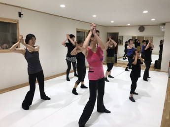 | ●ツイストやクロスの速いステップ、ダウンからシェネetc・・他にも課題一杯でしたが、ラストには皆で力一杯踊って今日も充実の楽しいレッスンでした! | |||