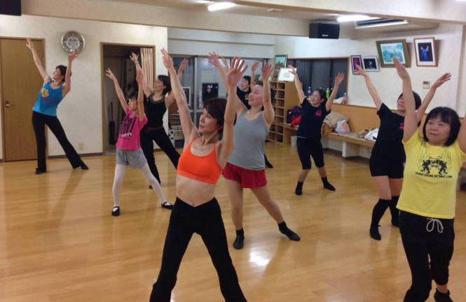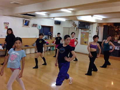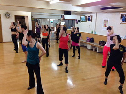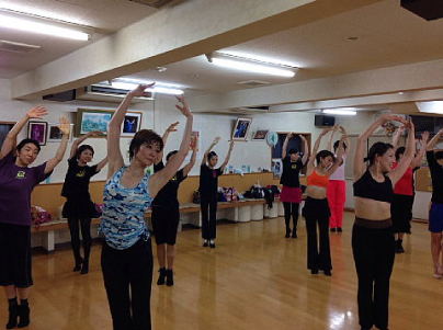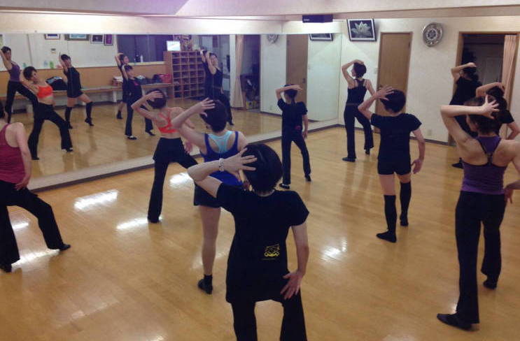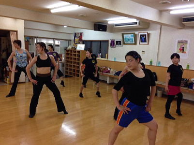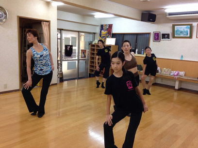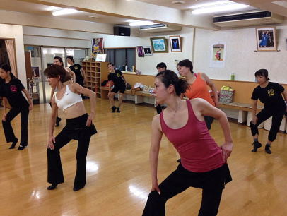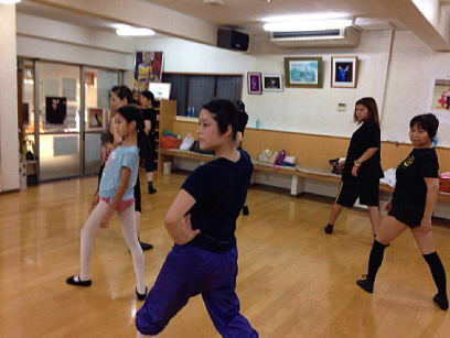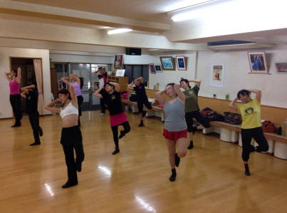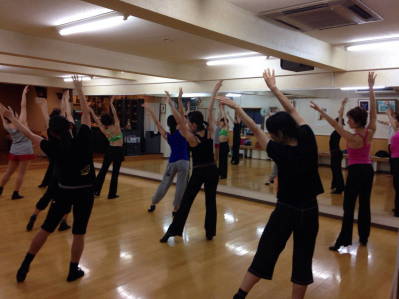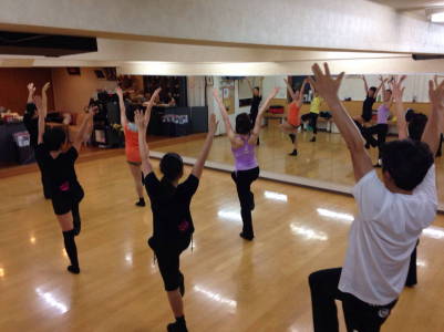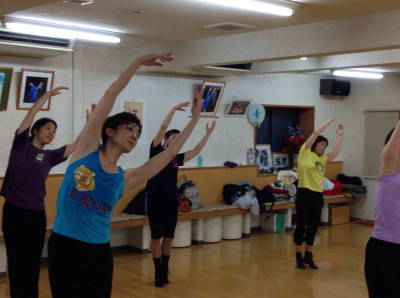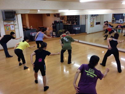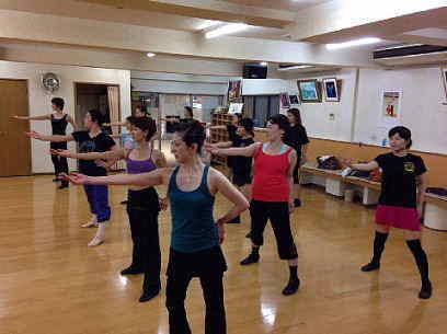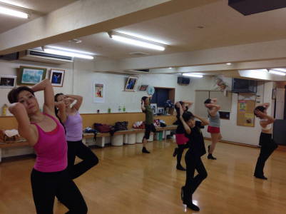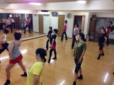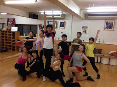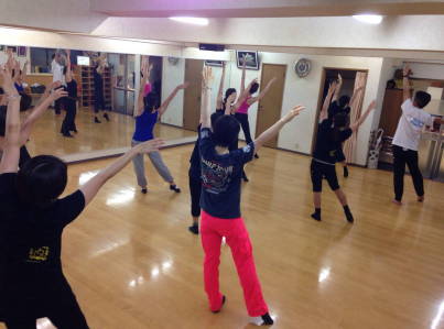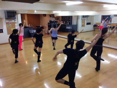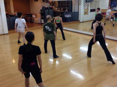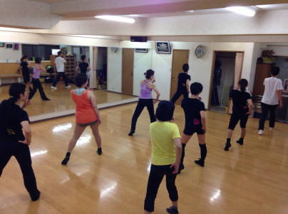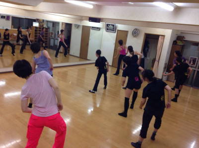 | ●ウェーブやヘッド回しに複雑な手の動きが入った振り付けに全員苦戦! 先生は苦笑(;^ω^)・・今日も熱いレッスンでした! | |