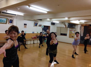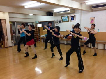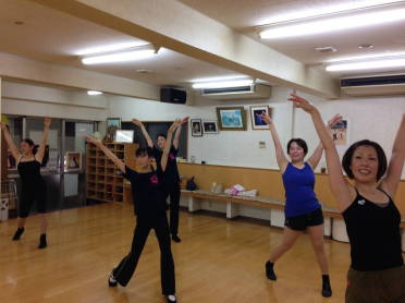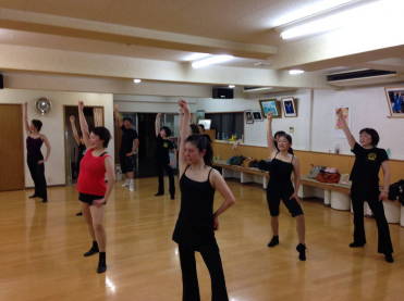 | ●男女ヴォーカルの掛け合いに合わせてショーのようにウキウキと華やかに!(*^▽^*) 一曲を踊り切って、今日も充実のレッスンでした(#^.^#) | ||