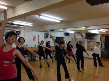 | ●振付が進むに従ってナチュラル・ハイに・・( ;∀;)明日の全身筋肉痛を予感しつつも全員力一杯、笑顔一杯で一曲踊り切り今日も爽快なレッスンでした! | ||