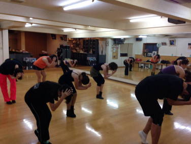 | ●ホップやジャンプ、ラストにはエア・プレーンターンと、盛沢山の振付でしたが、皆ハイテンションのまま終わって楽しいレッスンでした!この後いよいよ 待望の忘年会です!! 宴会の様子は後日UPします(*^-^*)お楽しみに!! |
