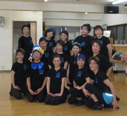 | ●2015年12月27日 今年最後のレッスン風景・・ 先生から頂いたTシャツに合わせて!ブルーのアイテムを身につけた 浮かれた者共がスタジオに大集合~! | ||