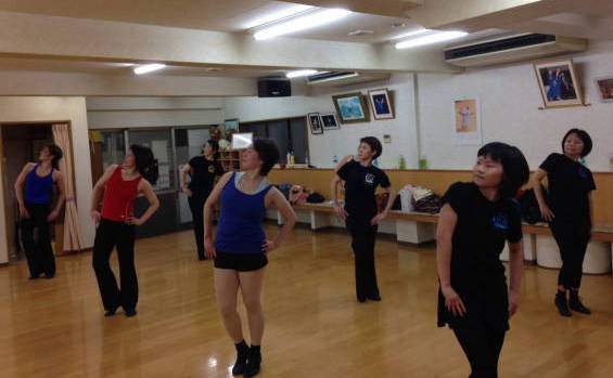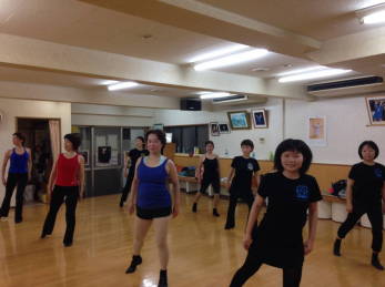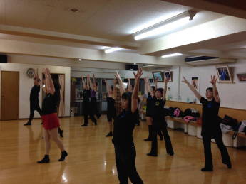 | ●カッコよく、時々キュートに(?)リズムをとりながら、ターン、ステップ、キックetc.・・『曲に合わせて~っ!!』 先生の声が飛びます\(◎o◎)/! | ||