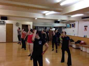 | ●バックで刻まれるリズムと 盛り上がっていくヴォーカルの両方に合わせようと、四苦八苦しながらも 熱く踊った充実のレッスンでした!(=゚ω゚)ノ | ||