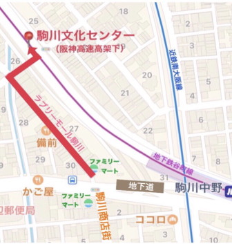 | 〒546-0043 大阪市東住吉区駒川3−26−1 駒川文化センター |